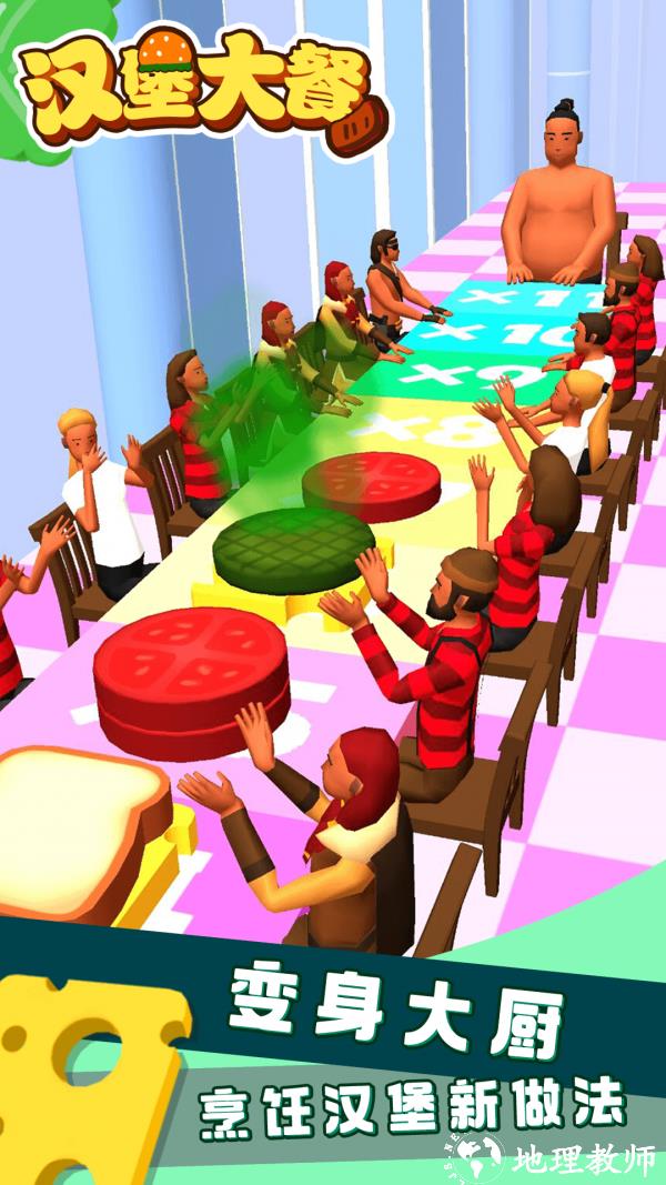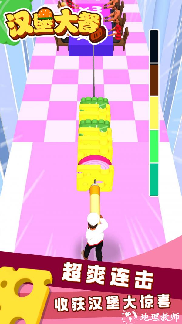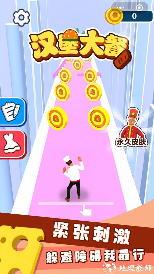 汉堡大餐是一个相当有意思的跑酷游戏,在这个跑酷游戏的赛道上,你会扮演一个厨师,面前的都是各种各样的食材,通过一路的收集,到终点的时候为你的顾客制作出一顿丰盛的美餐,不过你要注意的是一路上千万不能有掉落,不然就功亏一篑了。