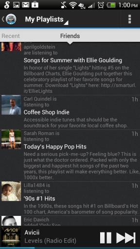 打开Songza,可以看到应用下部的5个按钮:“Concierge”、“我的歌单”、“