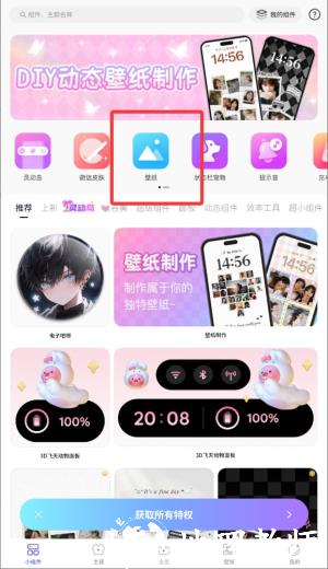 2、在主页面选择壁纸功能入口,浏览各类个性化壁纸资源分类列表。