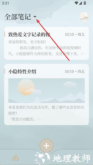 1、打开app,点击左上角全部笔记旁边的三角箭头