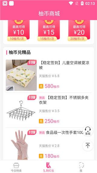 2、首页可参与 1 元秒杀等活动,点击右上角 “签到” 按钮,每日签到可获得柚币(用于后续抽奖);