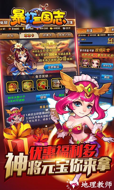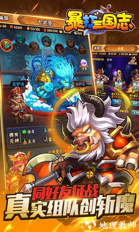 东汉末年,三国分立,烽火连天金戈不止,在那个世间争雄的年代,人命如草芥,群雄争霸,英雄辈出。《暴打三国志》便是以三国历史为蓝本,经数年研发而成的一款休闲娱乐类卡牌游戏。游戏将带大家进入三国战乱时代,玩家用自己的威望与实力招罗天下好汉,只需要手指轻轻点触屏幕即可暴打三国群雄,提升自己的实力,不断打败历史武将,让著名英雄人物臣服。