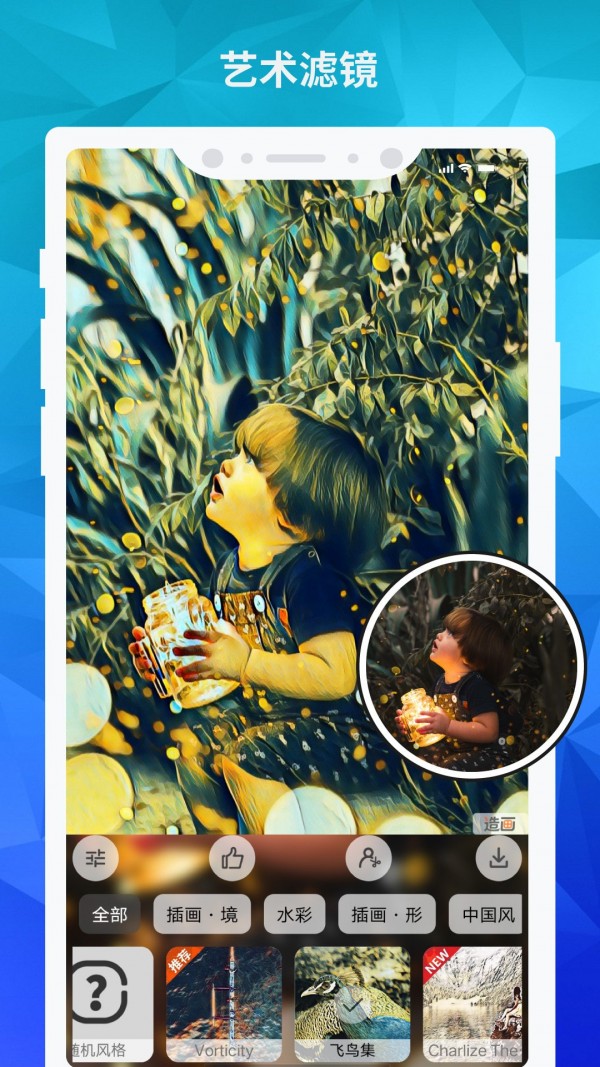 一键就能将普通风景照变身艺术作品?赶快来看看这款超级酷炫的手机滤镜软件《造画》,软件中有超过300款的艺术滤镜,分别对应人物景色物品等等多种不同的事物,让大家可以轻松选择自己喜欢适合的滤镜打造独一无二的艺术效果,软件的滤镜风格丰富多彩,满足大家不同的喜好,还有强大的编辑功能,一次玩过瘾~