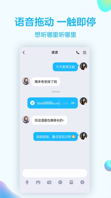 1. 智能语音:语音消息支持暂停和进度条拖动,收听更方便,解决了长语音消息不便重听的问题。