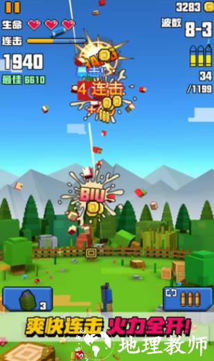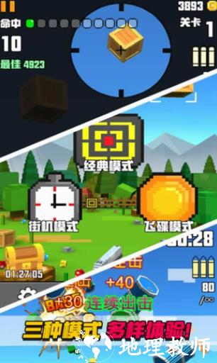 1、射击!用枪来击碎飞出的物品!打碎它们,获取分数与金币,不要让它们落到地上;