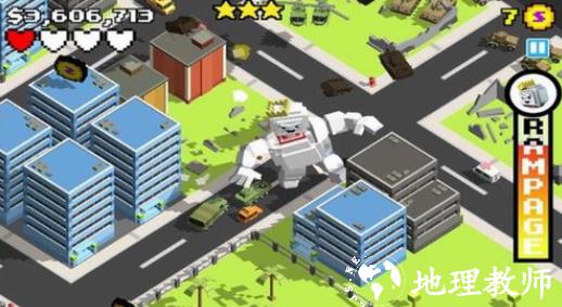 粉碎城市是一个玩法非常解压的休闲发泄玩法的游戏,我们可以在这里用各种各样的方式来破坏你的城市,将各种灾害特效都模拟的非常逼真,彷佛这个游戏世界中的上帝一般,你将在这里通过复古,经典的画面风格,用怪兽的技能来进行破坏得分,破坏的越厉害,分数也越高。