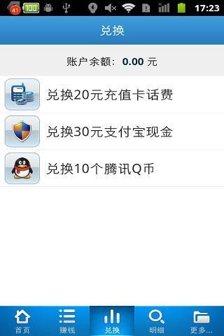 体验三分钟,达到1元,您即可兑换1Q币;达到10元您就可以兑换10Q币,达到20元您可以兑换等值手机话费;达到30元您可以提取现金到您的支付宝。