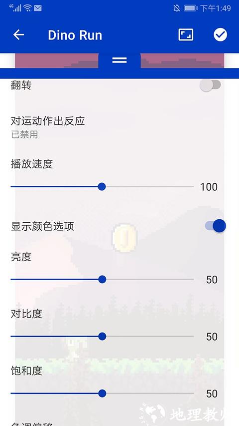 2、进入壁纸动态预览界面,选择下方【两条杠】图标,可调整翻转、播放速度、亮度、对比度、饱和度等参数。