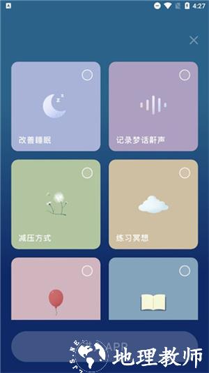 1、打开幻休助眠app,选择一下使用倾向,方便app为您推送相关内容;