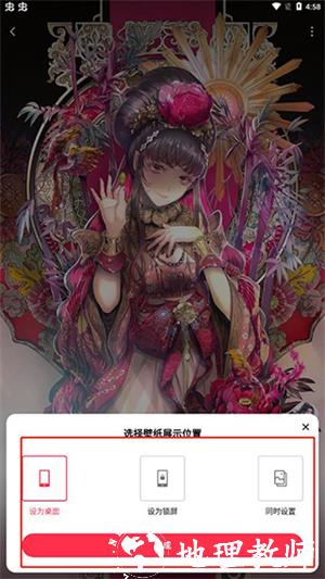3、一键即可设置桌面壁纸与锁屏壁纸,操作简便,且能自动适应手机屏幕。