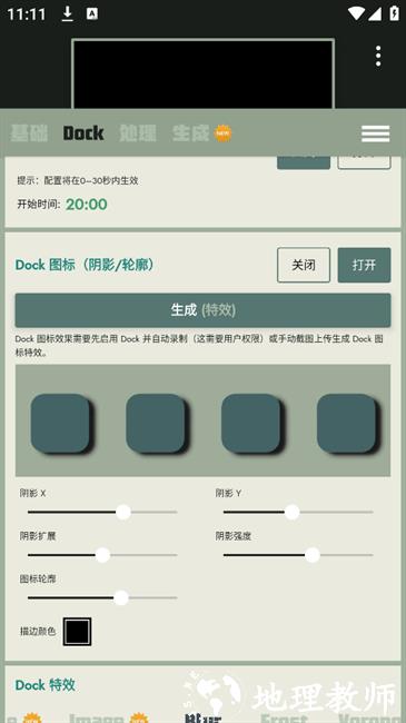 4、Dock 栏设置中包含不同特效及相关参数,可自由选择并完成设置;