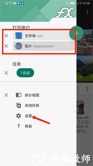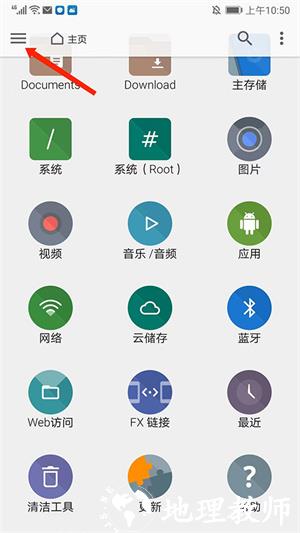 4、回到应用主界面,点击左上角【三条杠】图标,学习用拆分视图快速复制粘贴和管理文件。