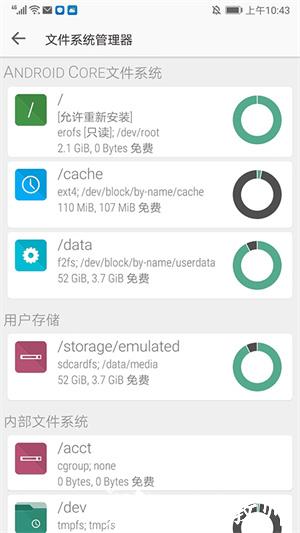 3、进入文件系统管理器界面,能看到不同类型文件系统、用户存储等信息,可根据需求打开或使用 Root 工具。
