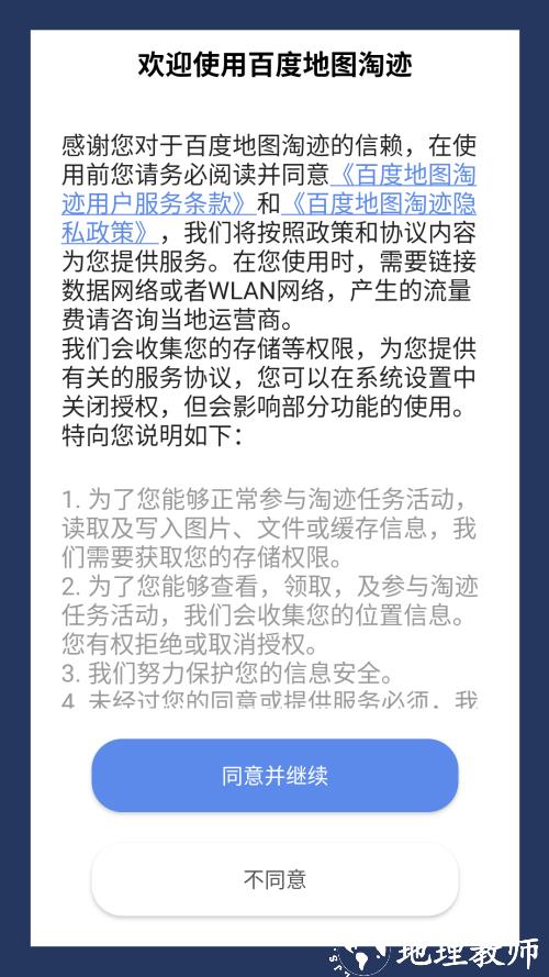 1、在本站下载百度地图淘迹 app 官方版,打开后同意相关协议,进入软件初始界面。