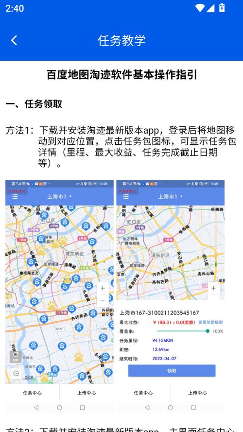 百度地图淘迹为节省流量、提升体验,要求提前下载所在城市任务包和离线地图,未下载则 APP 可能无法正常显示任务。