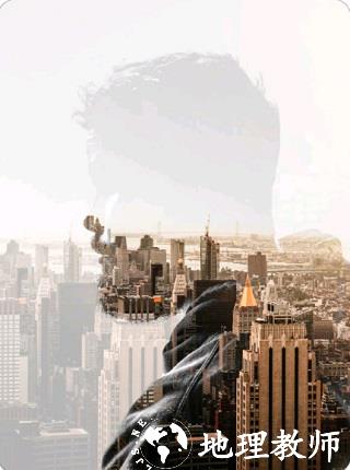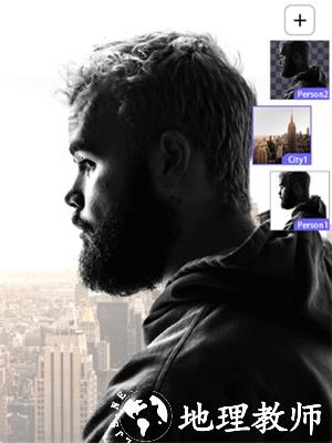 2、首先添加两张照片,将人物照片设为底图,城市照片作为混合素材。