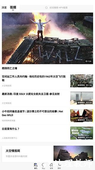 4、在主界面朝右侧滑动屏幕,可以切换到视频资讯专区,此处汇集了各类科学科普类影像资料;