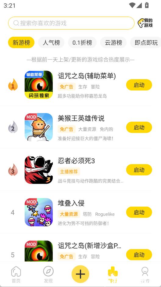 2、发现界面提供丰富的分类和游戏单,快速找到喜欢的游戏