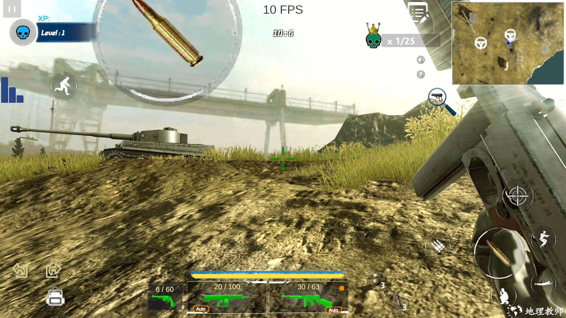 5. 击败25个敌人后才能获得胜利,完成射杀敌人任务可获取各种武器和道具。