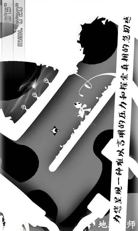 《零号世界》横版闯关游戏,风格另类(默剧黑白风),游戏难度非常高。游戏采用无按键的重力控制模式,需要玩家以较为有效的倾斜方向,控制主角在零号世界中闯关。而游戏的难点之处,不仅仅体现在重力控制上,更多的,则来自游戏较为特殊的设定。主角所在的零号世界,是一个没有任何固定方向的世界,只要将机身倒置,主角仍可保持“正常”的视觉;在大多数特殊场景中,需要玩家以这种奇异的角度,进行“扭曲”的闯关。一些黑暗阴影较多的场景,尤为凸显。