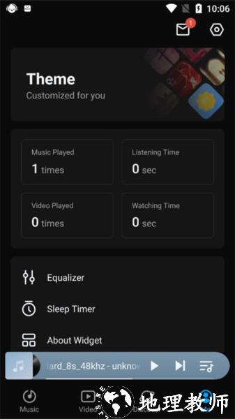 在这里拥有均衡器、定时功能、添加到主屏幕以及每天听歌、观看视频的时长等等。