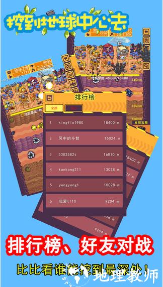 4. 排行榜与社交:游戏设有排行榜和社交功能,玩家可以结交好友、交流游戏经验,并和全球的用户比拼谁是最快探索到地球中心的那个英雄。