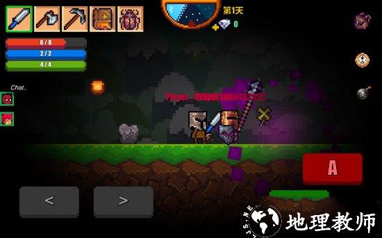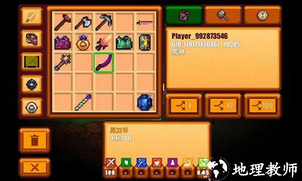 1、设有可更换武器的快捷使用栏,初始时会有三样道具,包括一件攻击武器和两件采集武器。