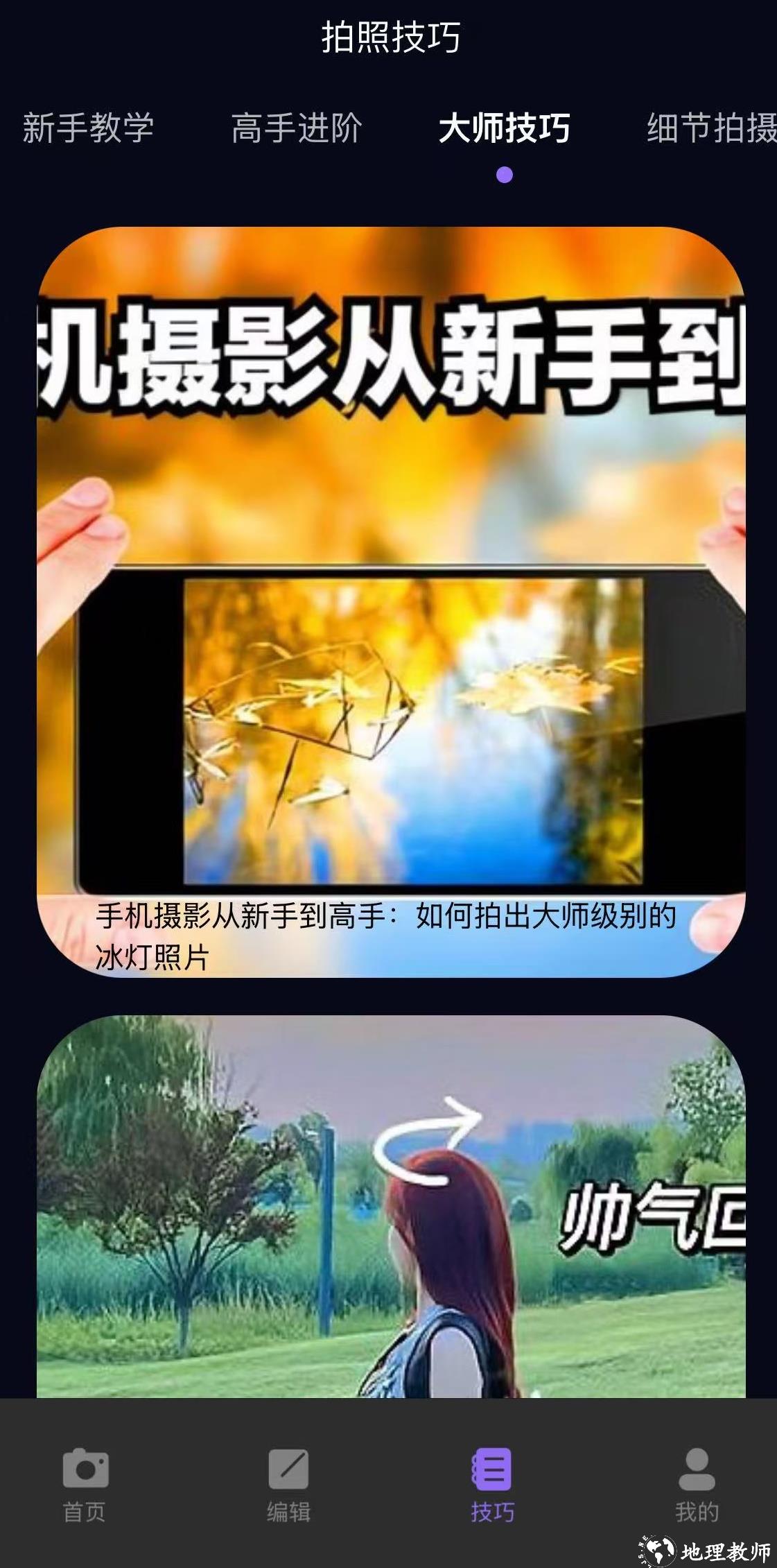 新手:按顺序学习 新手教学 → 高手进阶 → 大师技巧 → 细节拍摄