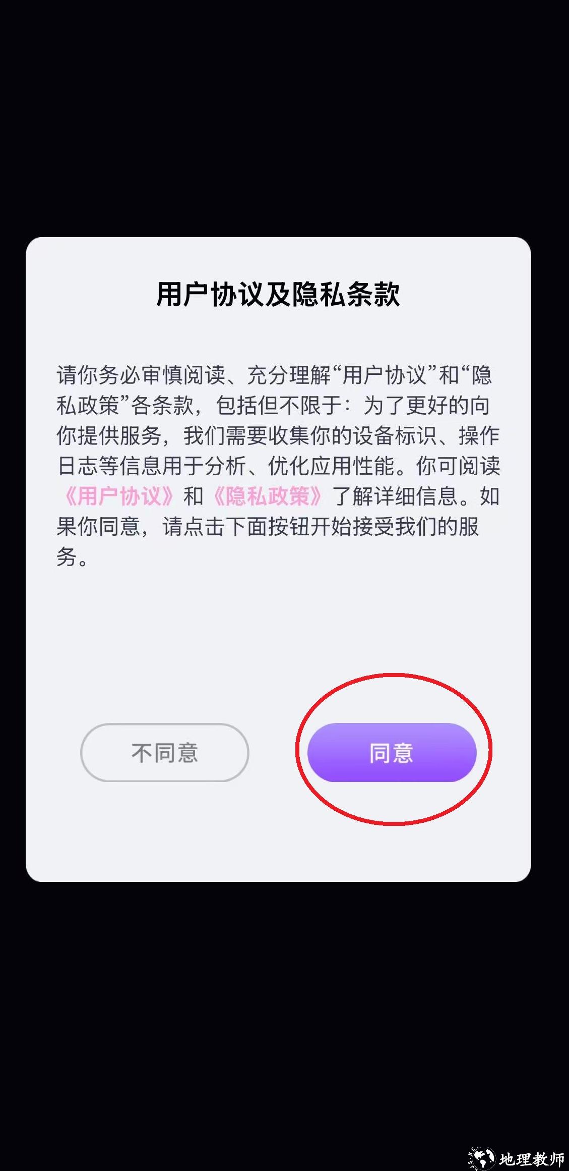 用户需选择“同意”或“不同意”。