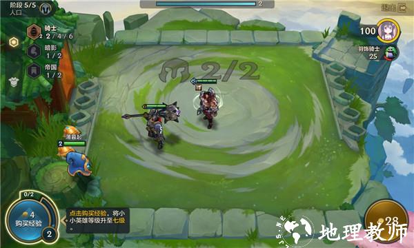 每位玩家都会拥有一只萌萌的小小英雄,初始血量为100。对战失败的情况下,依据场上最后存活的敌方棋子数量和等级造成伤害,高星级棋子对小小英雄造成的伤害更多,血量为0时即为游戏失败。同时小小英雄的等级也代表着人口上限,也就是可上场棋子的数量。另外,也有装备可以提高人口上限(这个后面会介绍)。在游戏左下角可以用金币来为小小英雄购买经验升级。