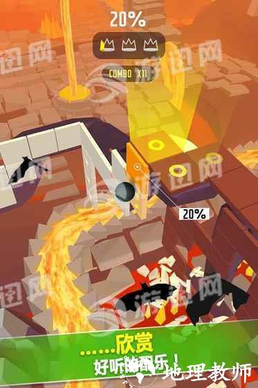 1. 跟随音乐节奏,精准操控小球在赛道上跳跃、躲避障碍。