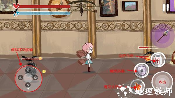 3、结合图文可先了解基本操作,后续能利用收获的水晶升级武器,提升基础攻击能力。