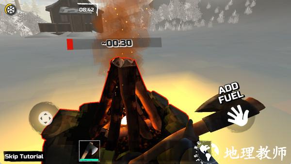 6、砍树后得到木材,利用木材点燃篝火,教程至此结束,后续可自由探索更多玩法。