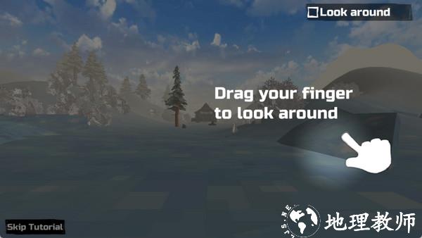 2、上岸后开启教程,滑动屏幕右侧可实现视角转动,便于观察周围环境。