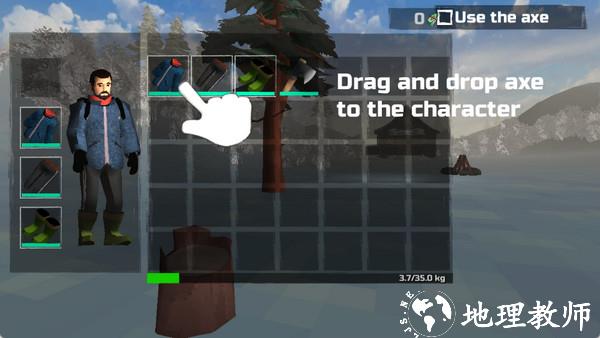 4、持续向前行进,能获取一把斧头,打开背包将其装备,提升基础工具能力。