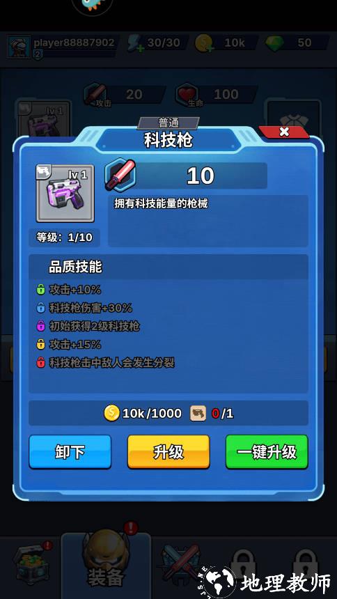 6、提升战力最快速的方式是为武器升级,通过升级武器增强输出,应对更强敌人。