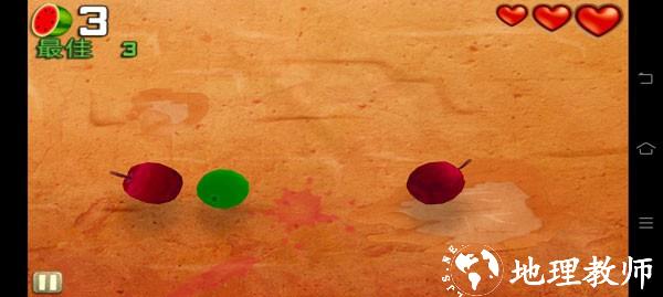 3、游戏内如图,玩家需要滑动屏幕切上方掉落的水果;