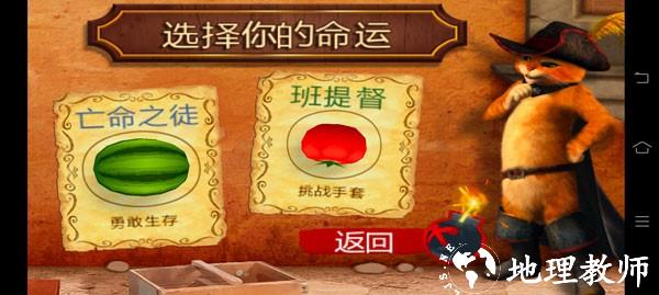 在原有玩法基础上,将代表生命的三个红叉替换为更具角色辨识度的 “靴猫” 三滴血。规则调整为每掉落一个水果,就会相应失去一滴血,这一改动让游戏过程中的生命消耗更直观,大幅提升了挑战的紧迫感,促使玩家更专注于精准切割操作。