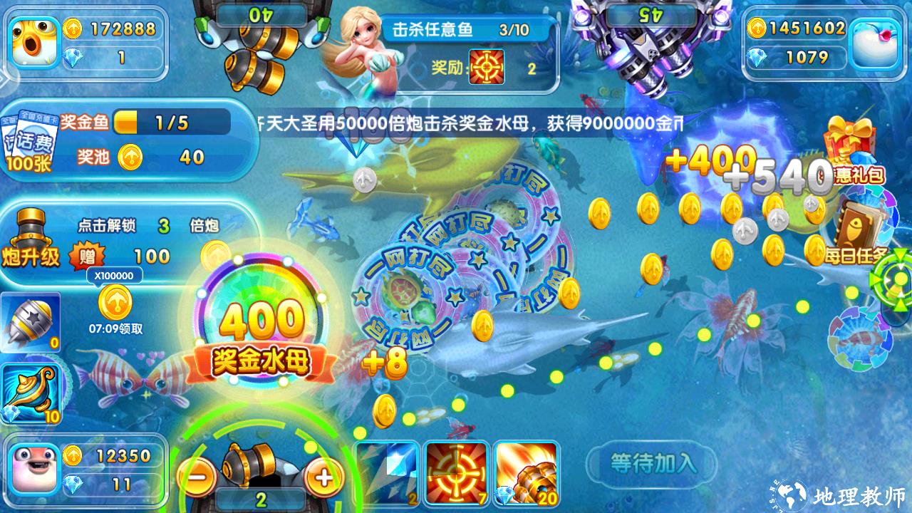 3、精美画面:采用高清 3D 技术呈现海底世界,视觉效果震撼,让捕鱼过程更具沉浸感。