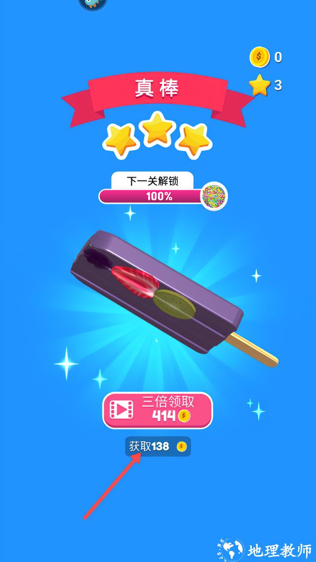 3、成功制作甜品并获得奖励后,找到界面中的 “获取” 按钮并点击,即可领取对应的金币奖励。