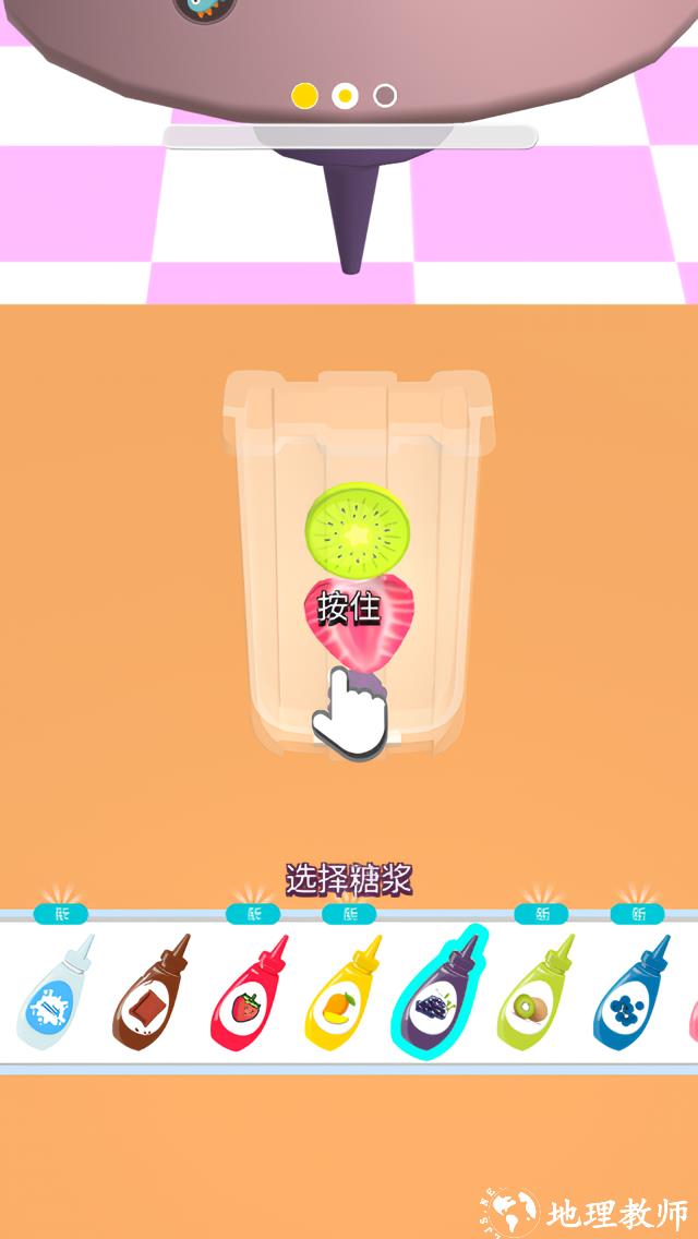 2、按照屏幕上的操作提示,挑选喜欢的糖浆,通过点击并按住的方式,完成相应制作步骤。