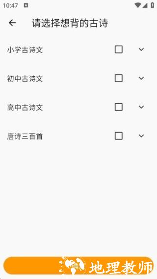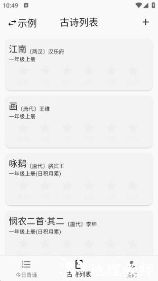 4、点击 “古诗列表” 选项,可查看各类诗词的完整内容,方便自主挑选背诵素材,整体操作简单易上手。