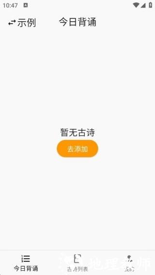 1、打开 APP 进入 “今日背诵古诗” 界面,若未添加学习内容,点击 “去添加” 按钮进入素材选择页面。