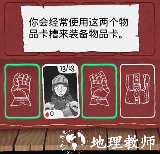 4.物品卡槽只有装备相应的物品才能使用,试着将武器卡牌拖动并放置到你左手的物品卡槽中,依次类推。