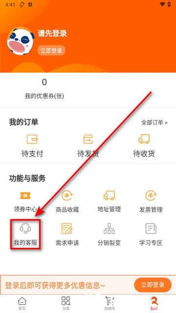 2、在个人中心页面中,找到并点击 “我的客服” 选项,进入客服服务界面;