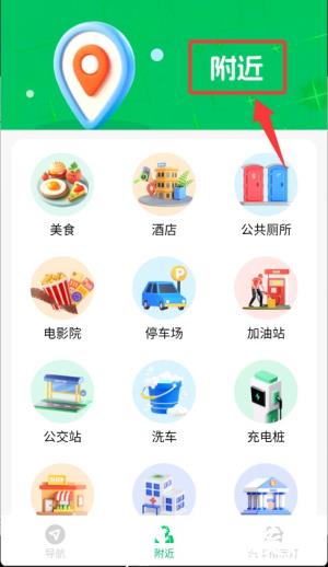 3、点击附近功能可查看周边美食、酒店等生活服务场所的具体位置。