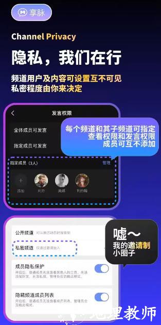 1、 频道内容与成员列表可设置为完全隐藏模式,访问权限由创建者自主控制,确保空间的私密性。