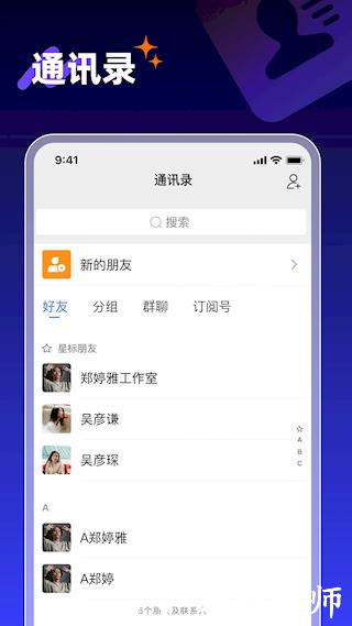 4、联系人亲密值系统通过分析互动频率智能排序重要联系人。支持自定义亲密圈层,不同圈层可设置差异化的消息提示方式。