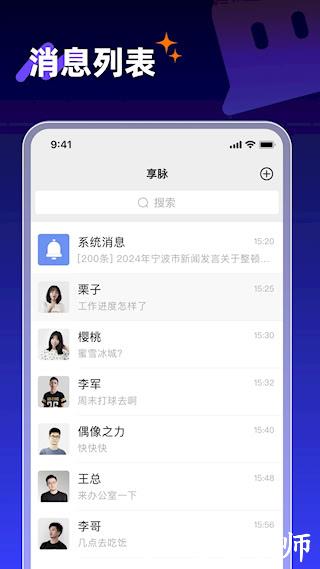 享脉是一款专注于即时通讯的工具,支持通过移动网络或Wi-Fi环境进行高清语音通话与视频连线,设有独立的好友管理界面,使联系人列表保持清晰有序。不包含复杂的附加模块或广告推送,所有通信数据均经过加密处理,确保对话内容的私密安全。提供更安全的交流环境。