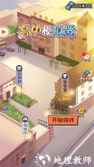 1、双击打开高中模拟器游戏,新手玩家可以点击开始游戏进入游戏,老玩家可以点击选关进入游戏;